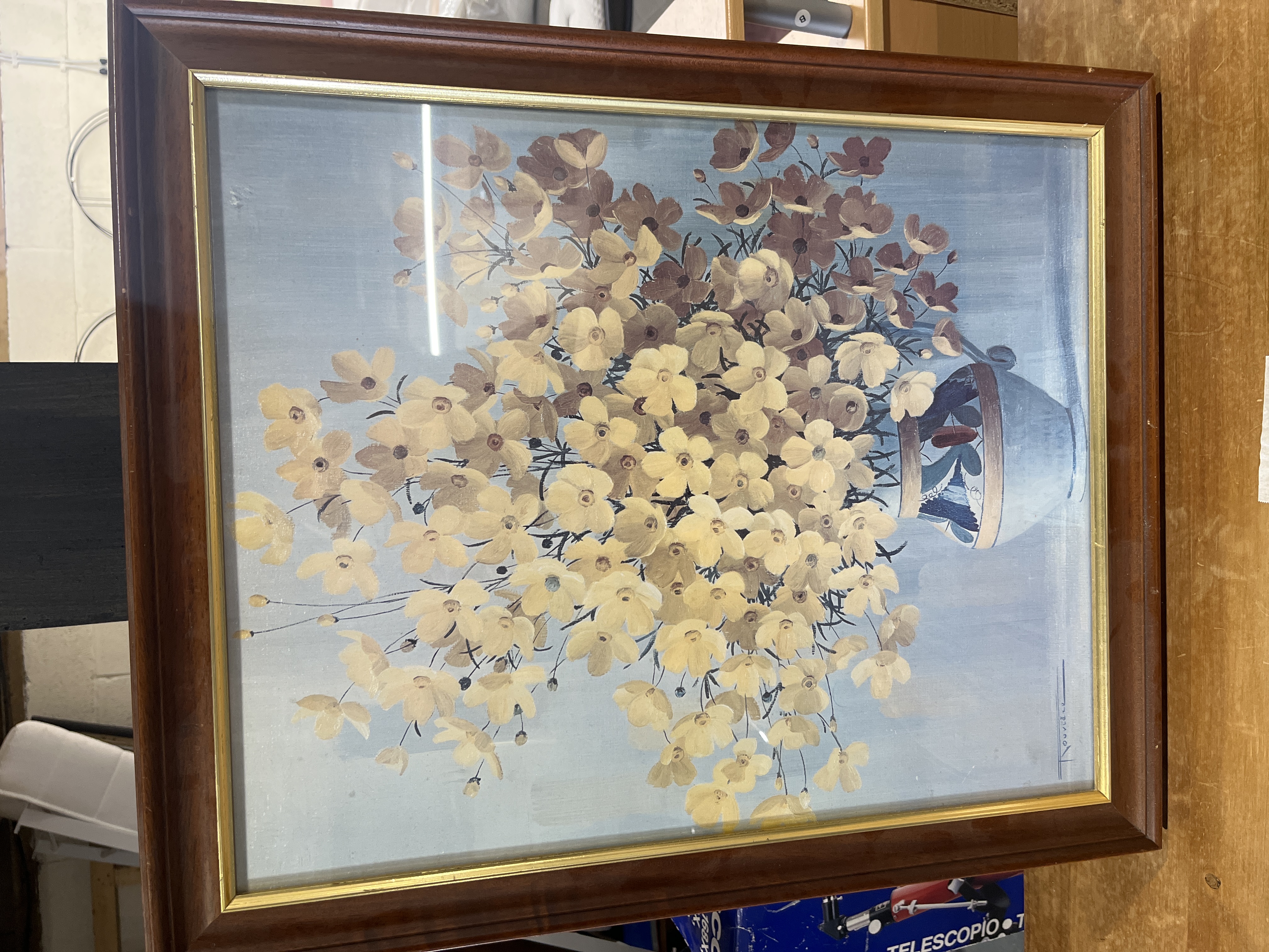 Large flower picture in frame