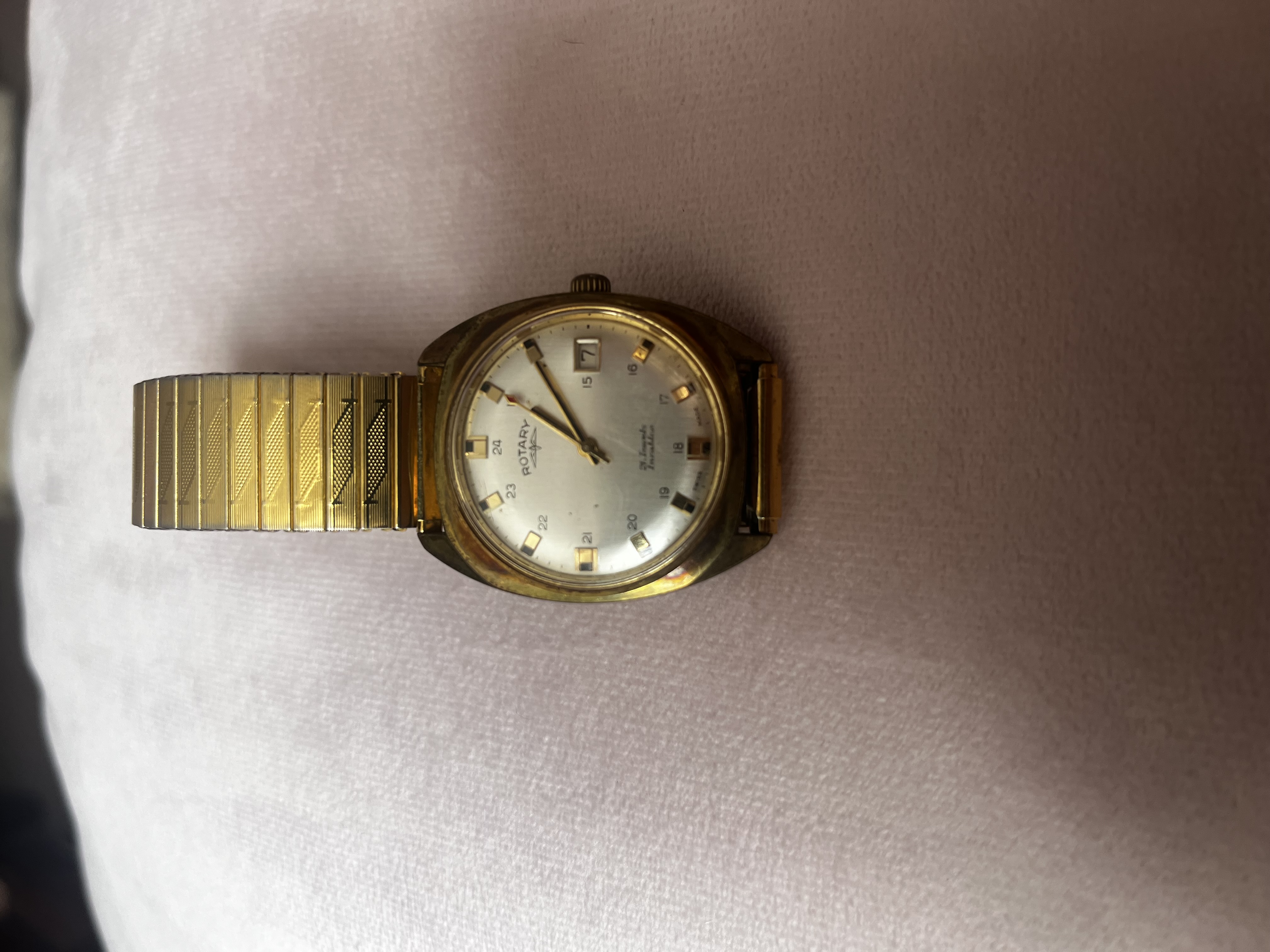 The other is a 1970’s Rotary Gents Dress Watch Gold plated case with a steel back and a 24 hour dial