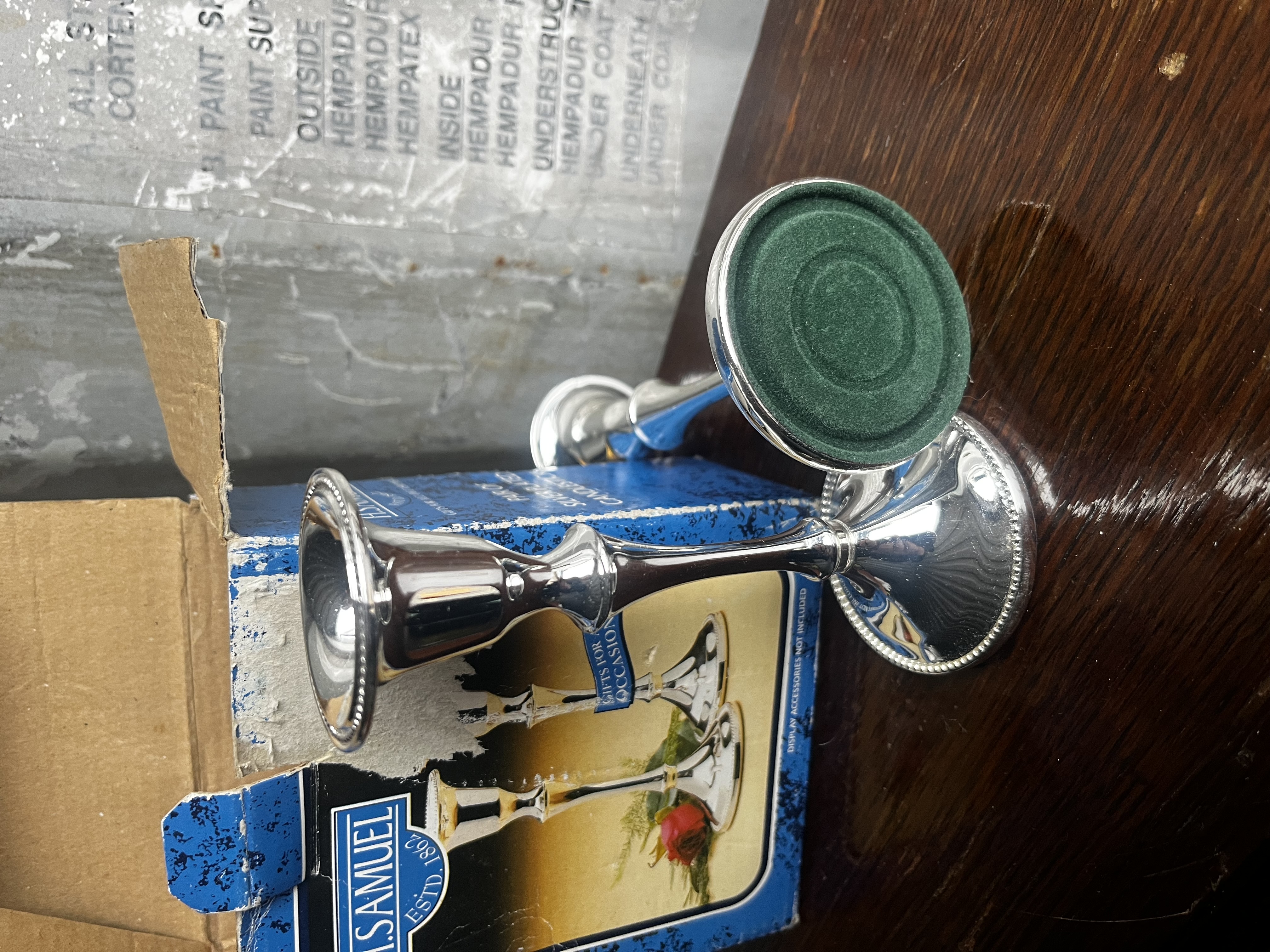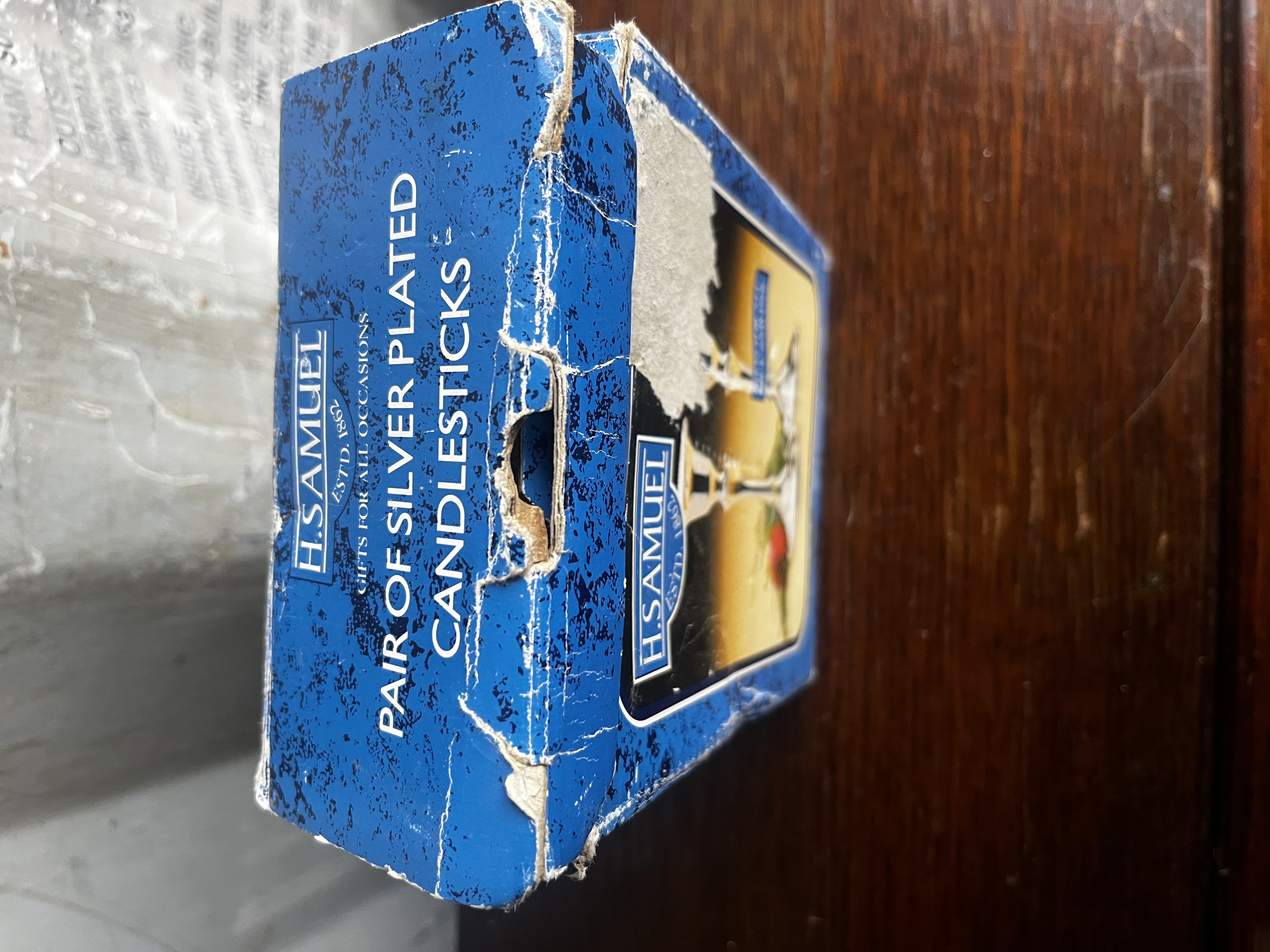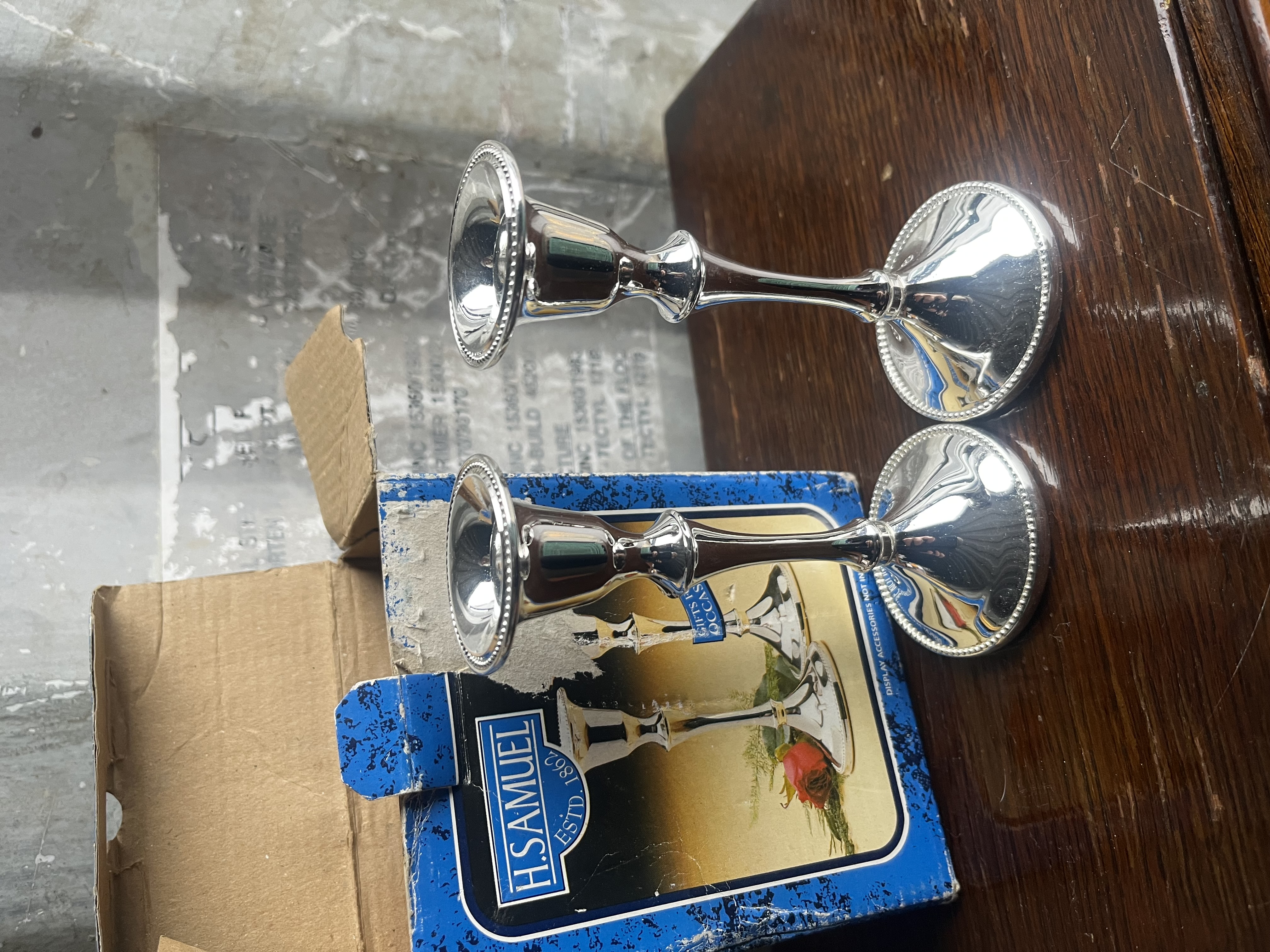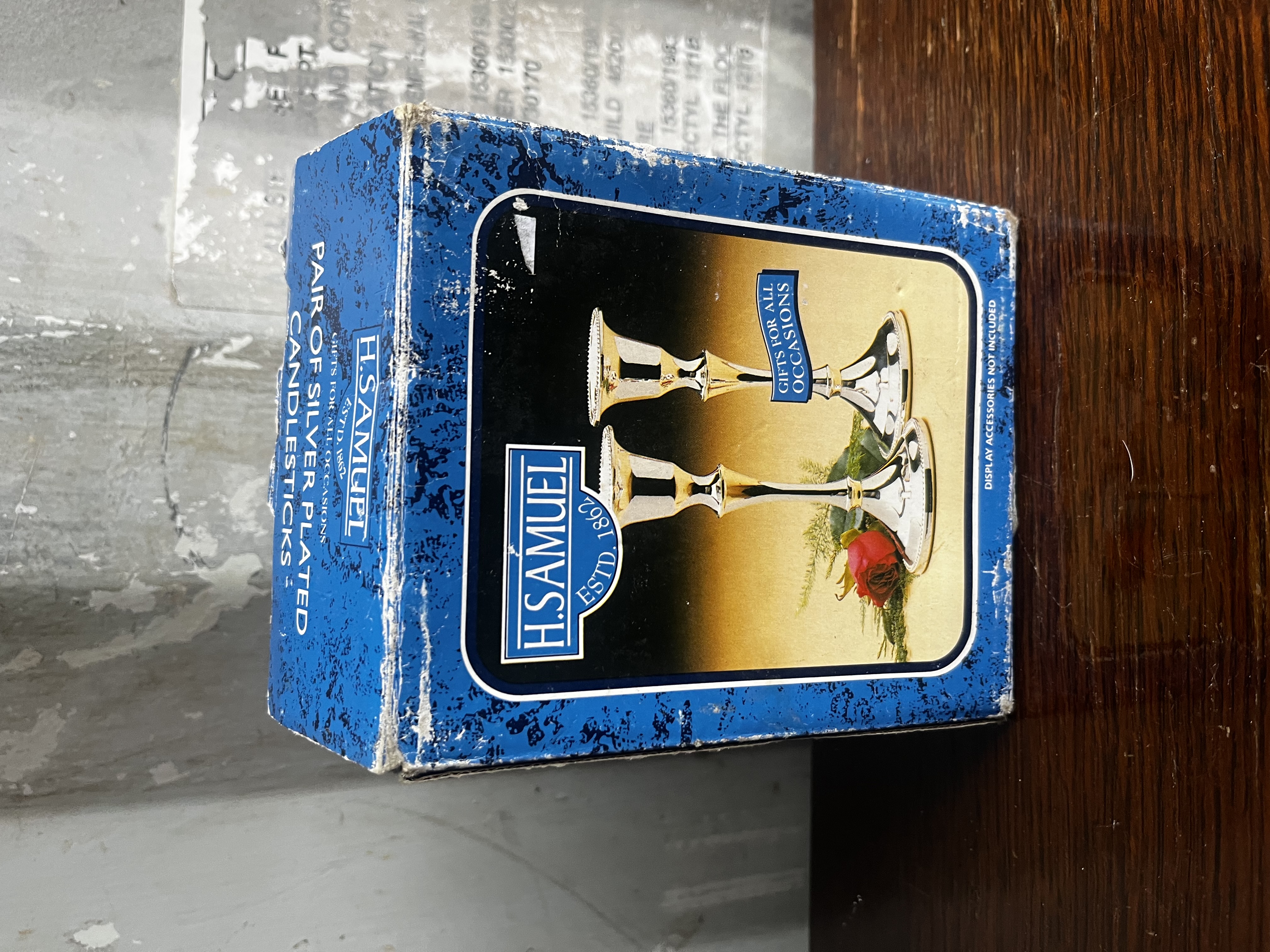 Lot 79: Vintage silver-plated candlesticks from H. Samuel