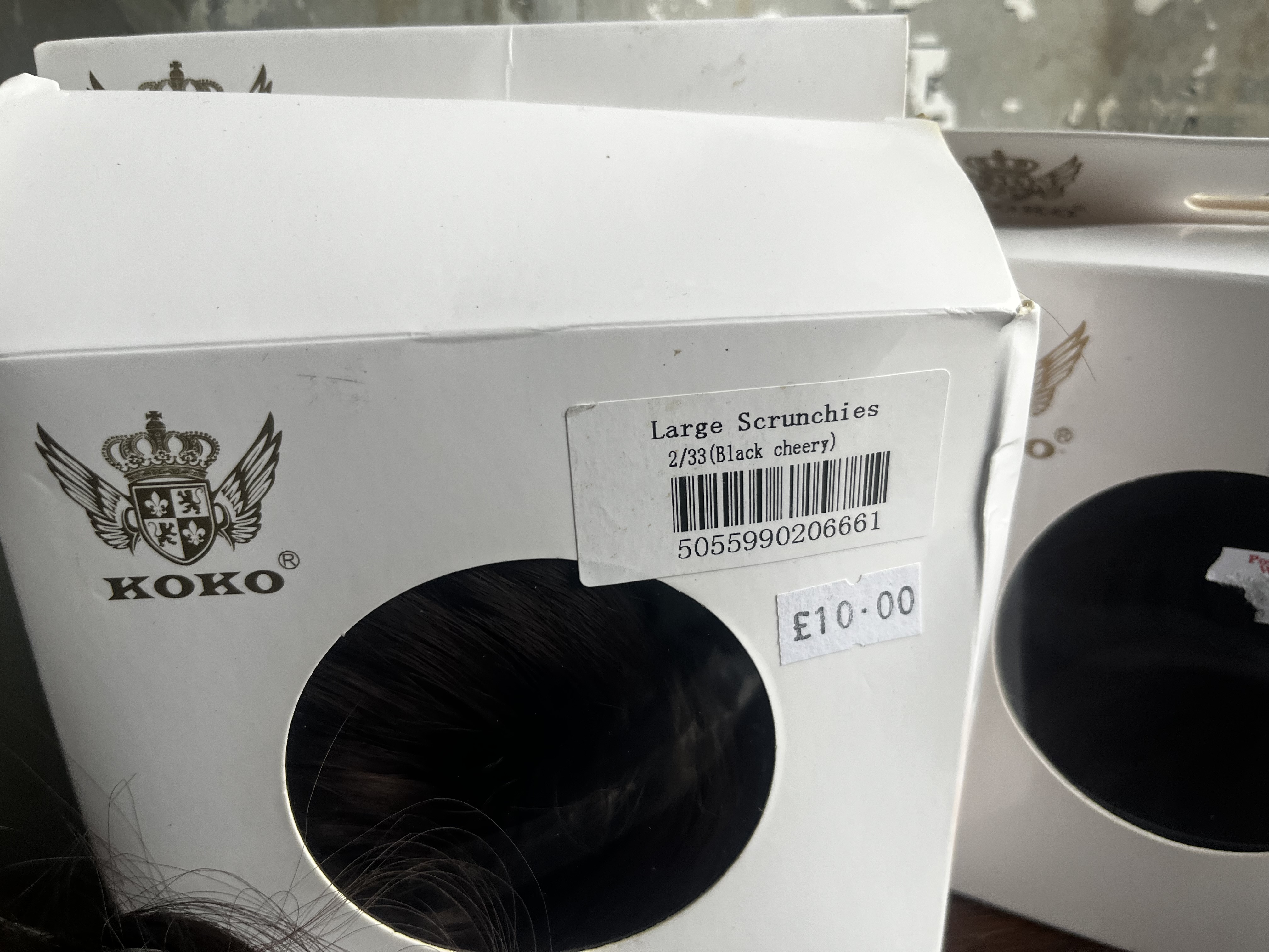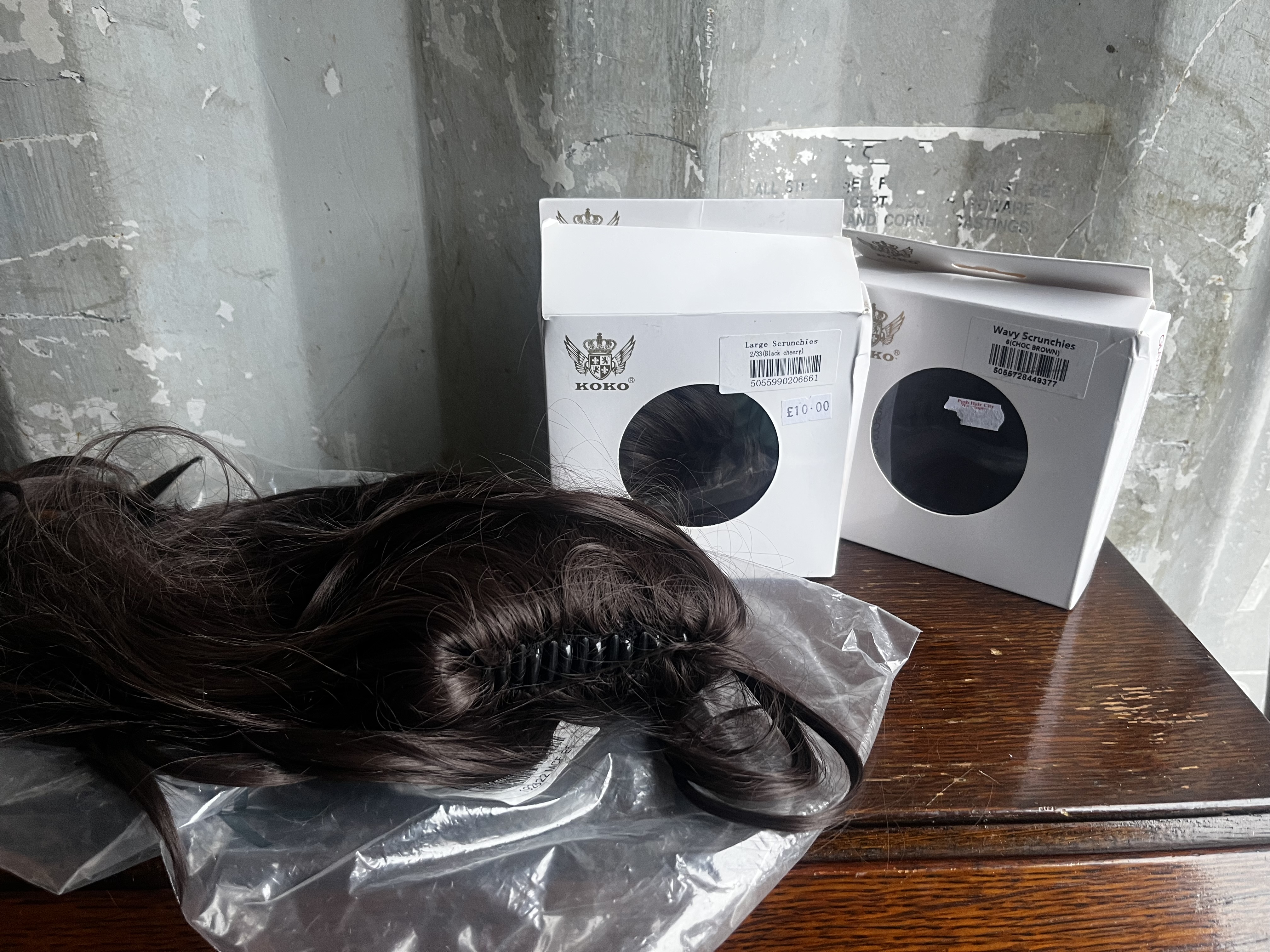 Includes x 2 scrunchies & one clip in ponytail – in brown tones, great for Christmas party’s